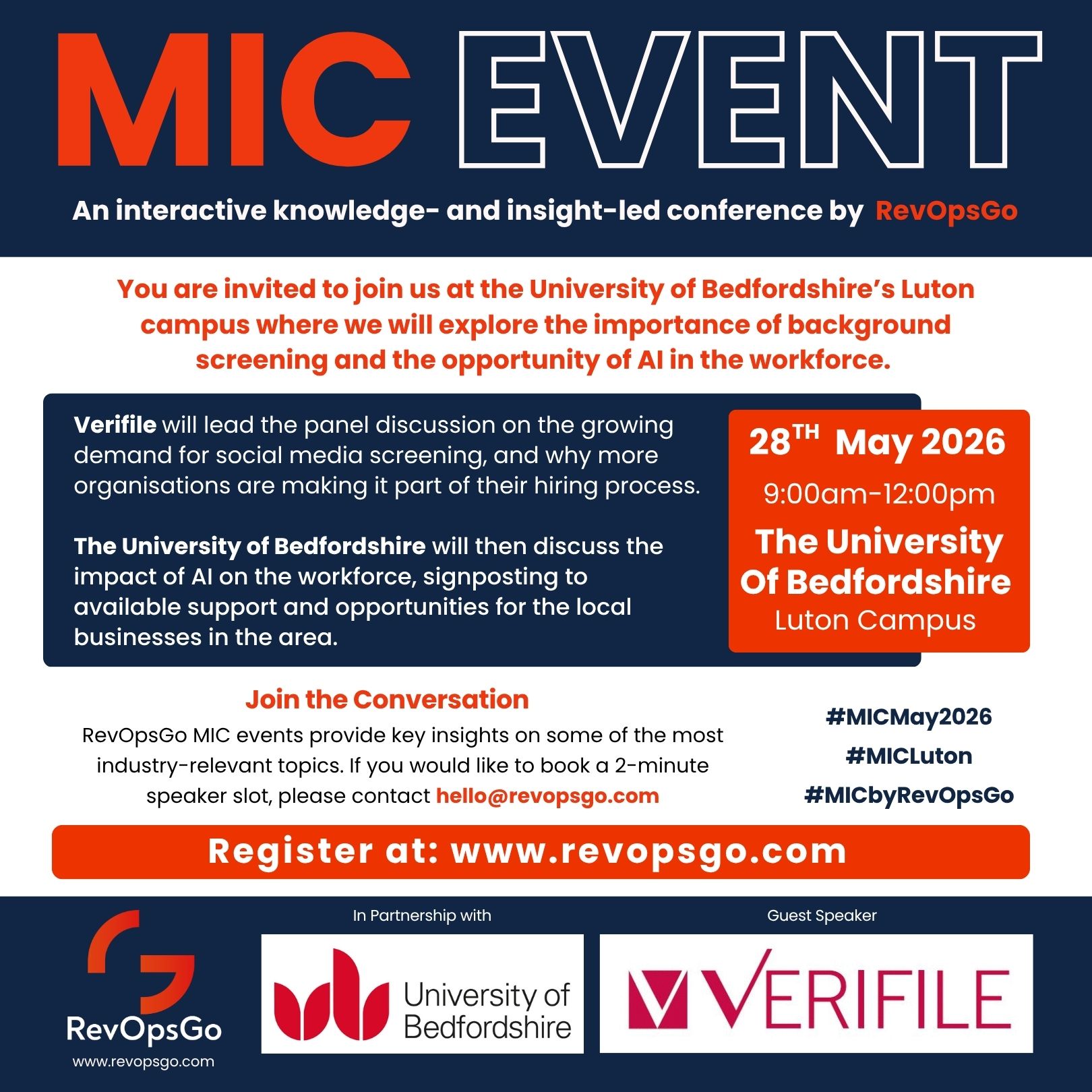 You are invited to join us at the University of Bedfordshire’s Luton campus where we will explore the importance of background screening and the opportunity of AI in the workforce.